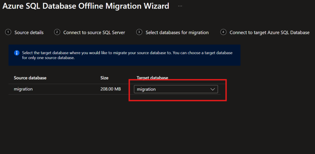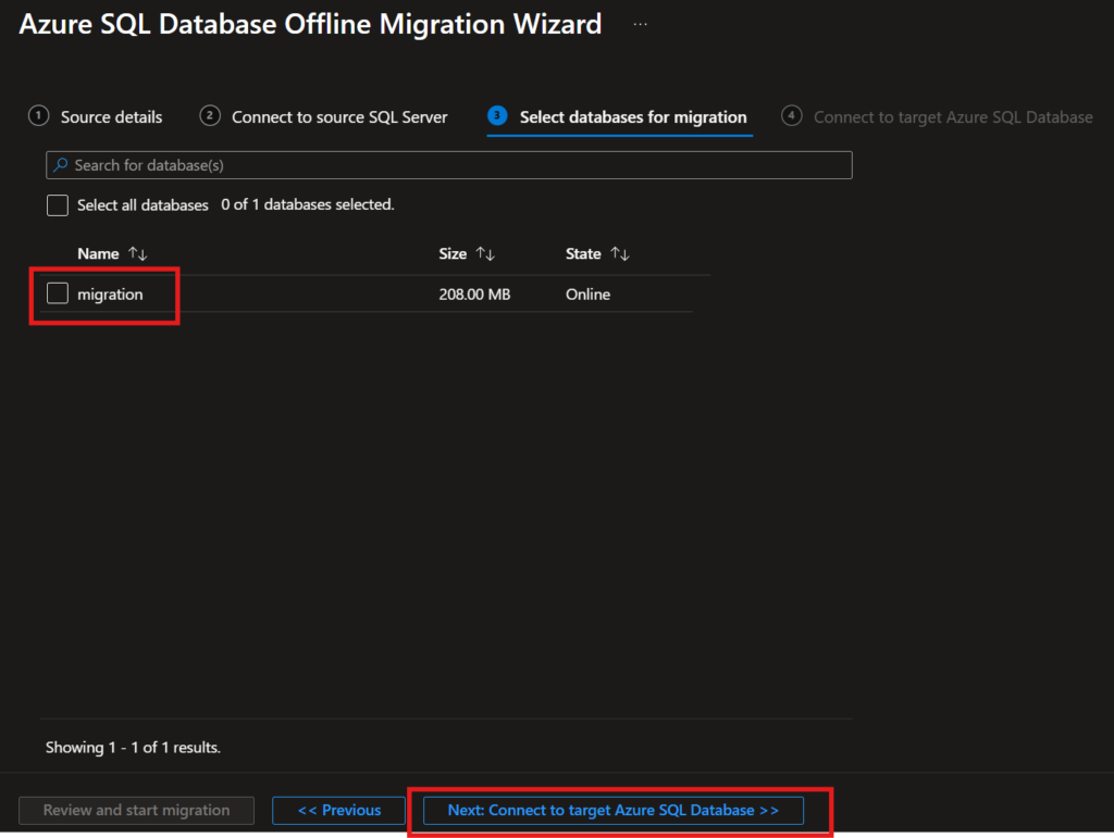 11. Select on-prem database for migration.