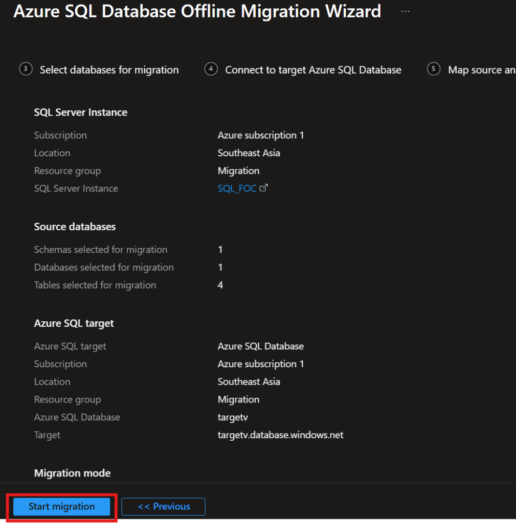 4. Start Migration.