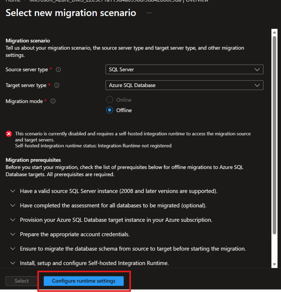 7. Configure integration runtime.